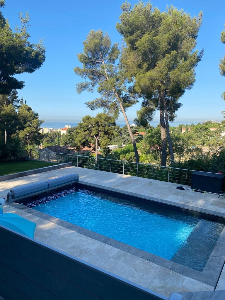En collaboration avec notre terrassier partenaire, le terrain a été structuré en quatre niveaux, tout en laissant une vue dégagée côté sud pour profiter pleinement de la mer et de la ville de Marseille, non loin de l’Estaque.
